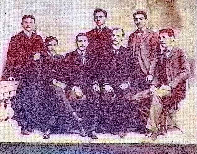 De izquierda a derecha de pie: Temístocles Carvallo, Eudoro González, José Benigno Hernández, sentados: de izquierda a derecha: José Manuel Espino, Inocente Carvallo Tomás Landaeta, y J. B. Puyou