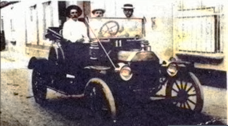 De Izquierda a Derecha: El Dr. José Benigno Hernández, en su Ford T-1914, al volante, Domingo Otatti y el periodista Rafael Silva (Lino Sutil)